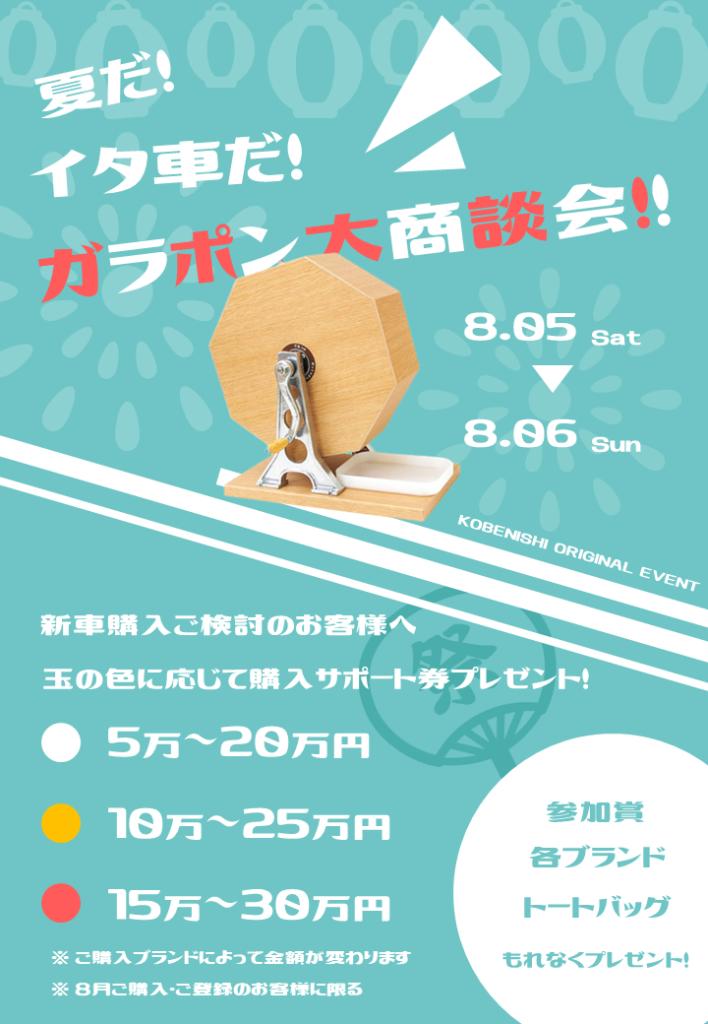 ※本日は定休日です今週末のイベントをお知らせいたします!/夏だ! イタ車だ!ガラポン大抽選会開催🌻✨\神戸西支店オリジナルイベントガラポン抽選会の開催が決定し...
