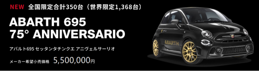 本日は新しくデビューした、限定車「ABARTH 695 75° ANNIVERSARIO」のご案内です。