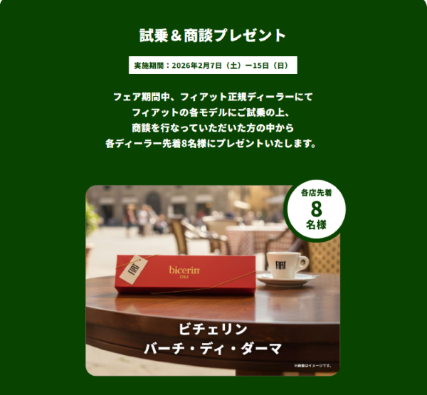 FIATと過ごす甘くて豊かな時間を味わうフェア開催!