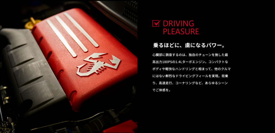 アバルトが自信を持ってご紹介する、高性能の証である『695』の名を冠したハイエンドモデル。